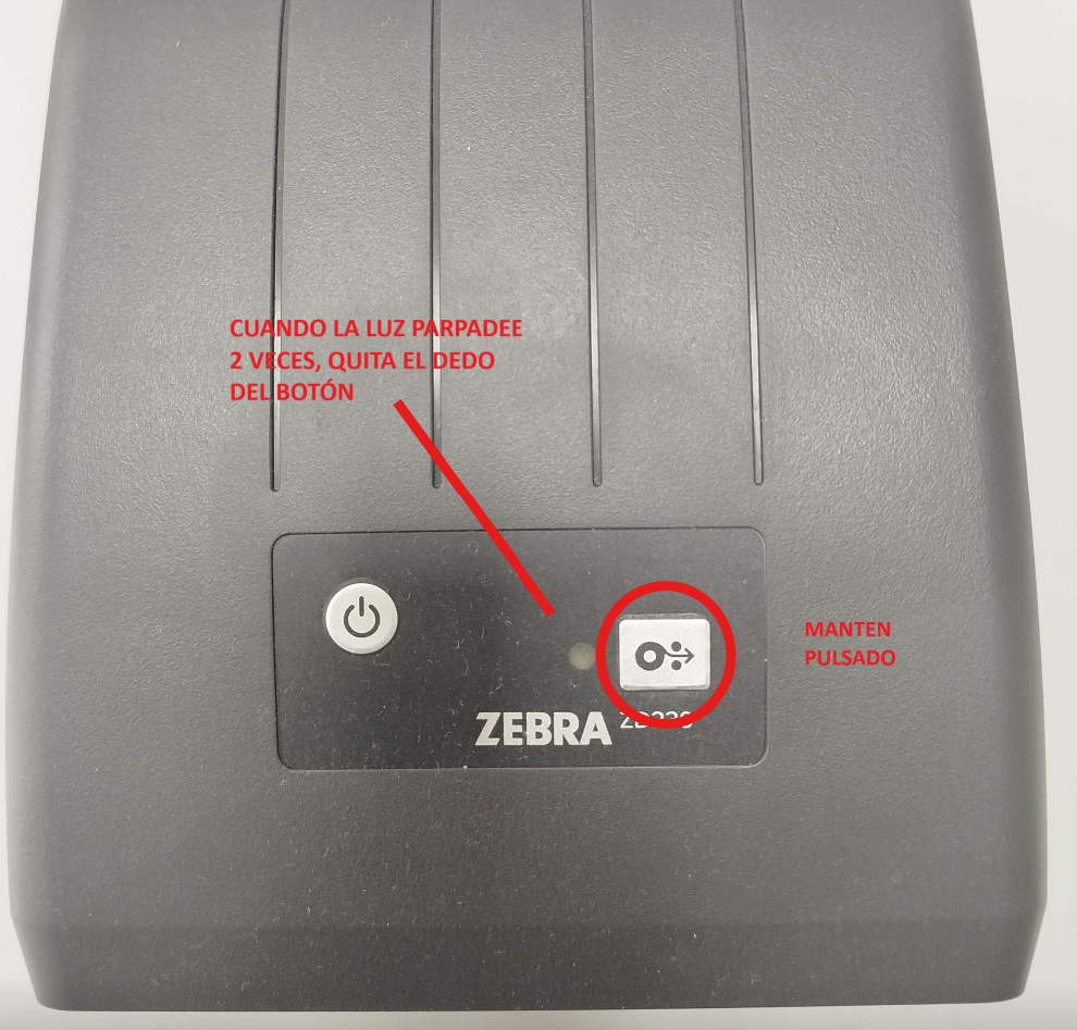 Mantén presionado el botón de impresión hasta que parpadee dos veces.